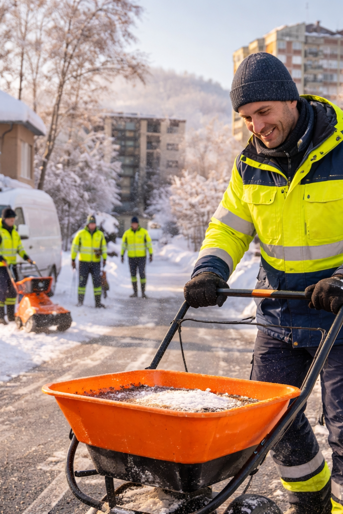 Räum- und Streudienste zur Gewährleistung der Verkehrssicherheit auf Wegen, Zufahrten und Außenflächen während der Wintermonate.
