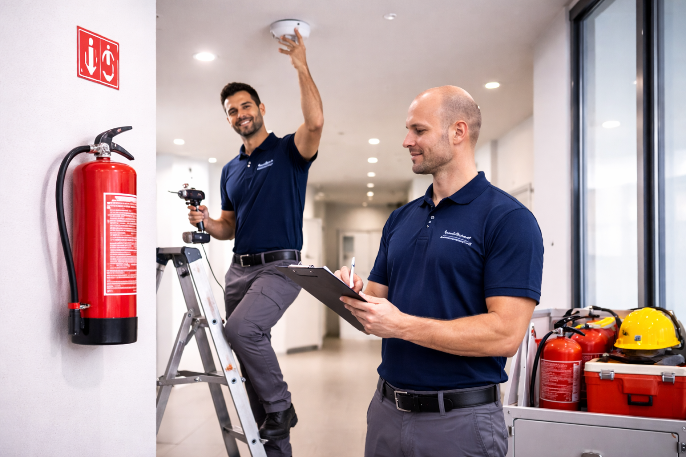 Montage von Rauchwarnmeldern inklusive Material, Brandschutzbeschriftung, Beratung, Schulungen, Prüfungen sowie Brandwachen und Sanitätsdienste.
